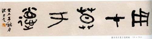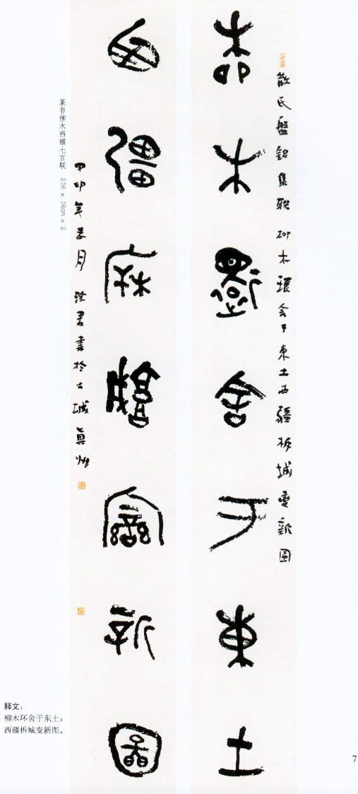 篆书柳木西疆七言联 236*36cm*2 释文:柳木环舍于东土,西疆柝城变新图 |